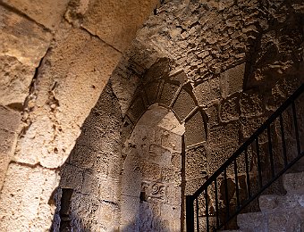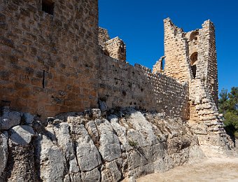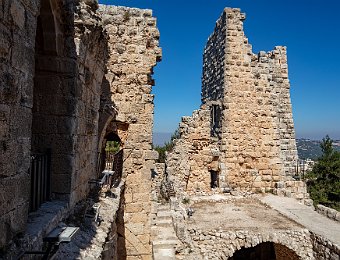 Ajloun Castle: a 12th-century Muslim castleAjloun CastleRoman sarcophagus in front of the castleDetail of the sarcophagusEntrance to the castleRampart of the castleRampart of the castleStaircase of the castleMosque in the castleVaulted passageway Amman 2019 Oct