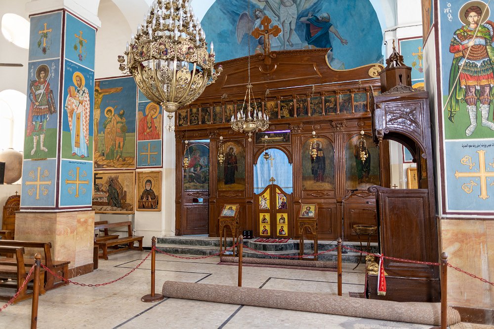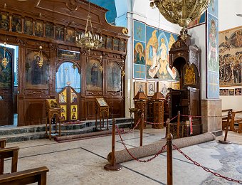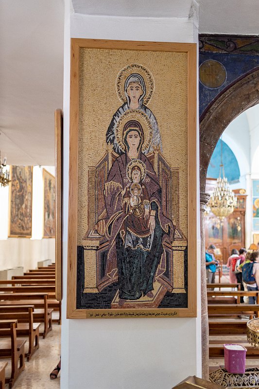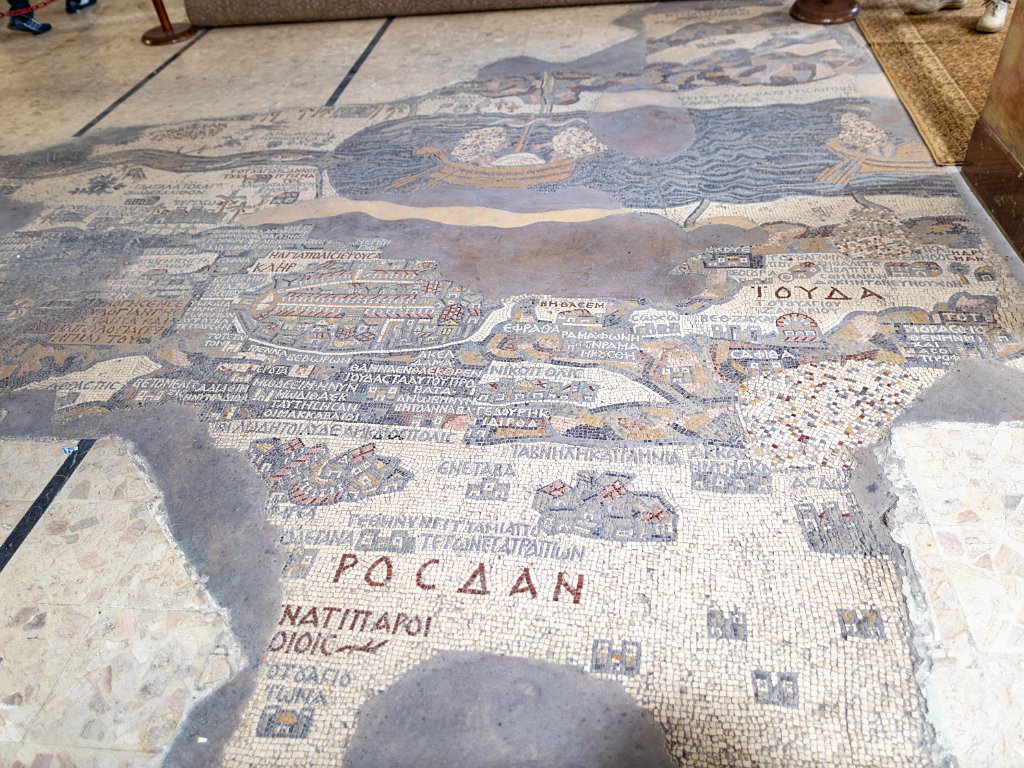 Church of Saint George: Greek Orthodox church, built 1894 - 1897Church of Saint George: the mosaic pavement was discovered in 1896Church of Saint George: a plaque next to the main entranceThe apseThe apseView of the Madaba Map: the mosaic map, dates back to the 6th century BC, is one of the oldest evidence of ancient cartographyThe Madaba Map: the Arabah, the Negev and Egypt (Nile delta, right) Little Petra 2019 OctMount Nebo 2019 Oct