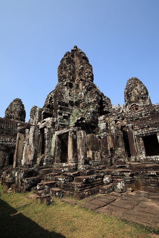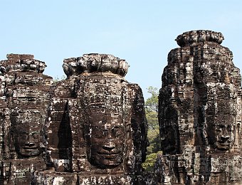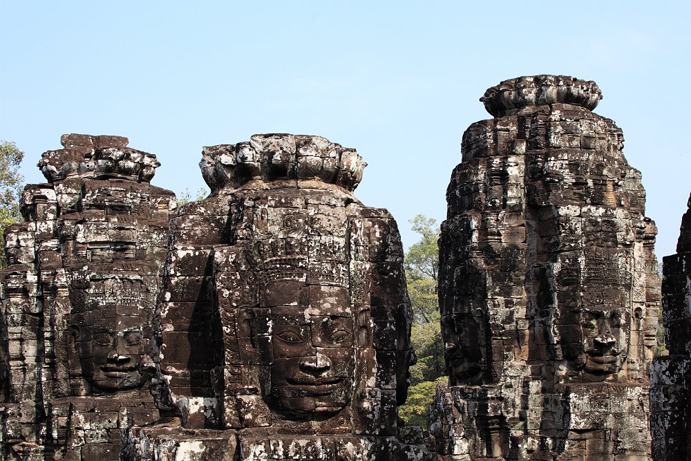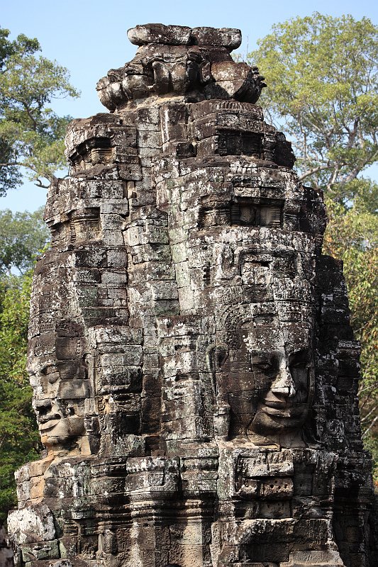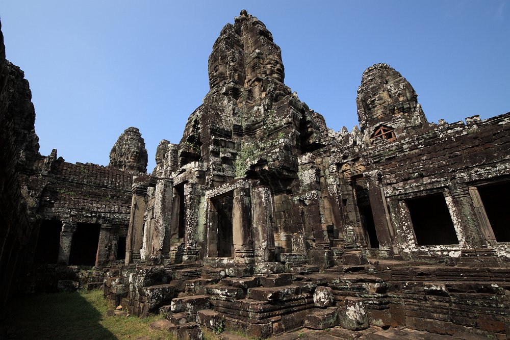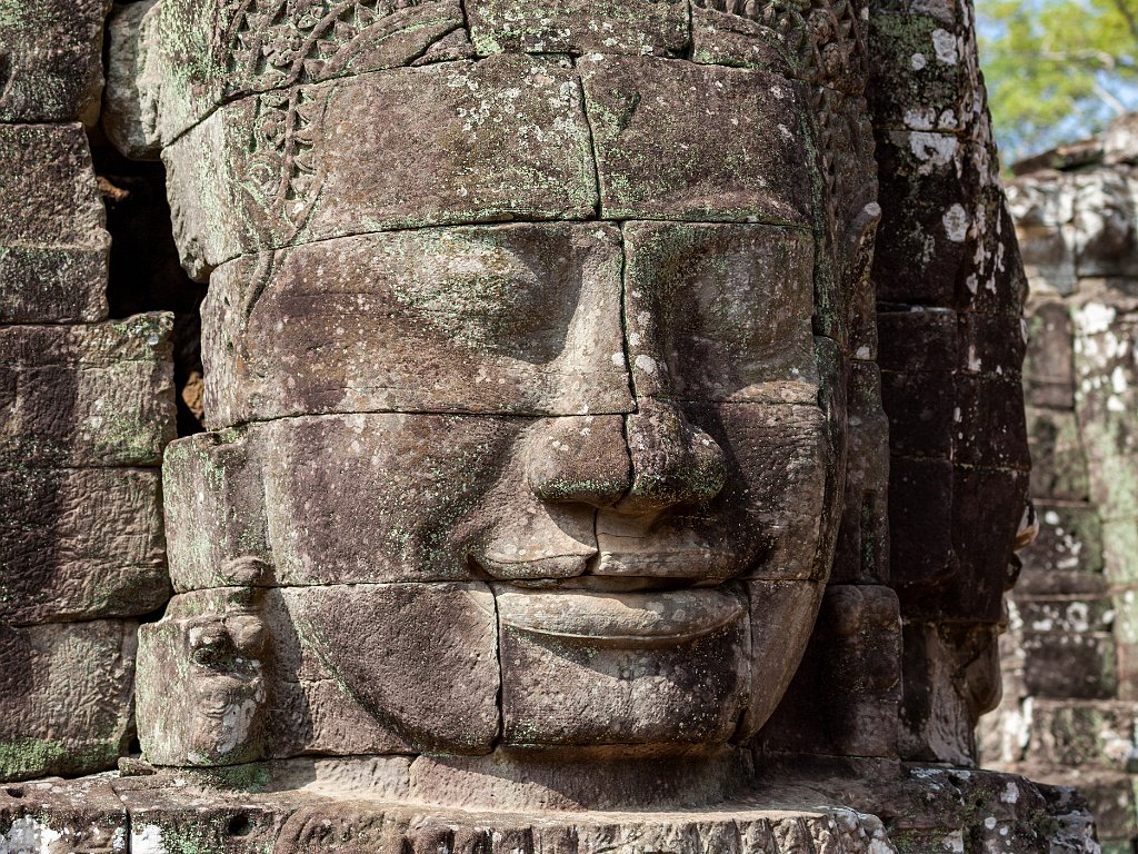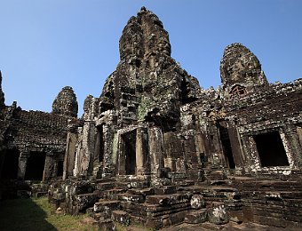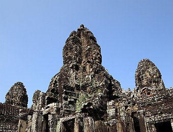East entrance to BayonInner courtyardA prasat inside the second enclosurePart of the surviving false ceiling of the inner gallery (left)Inner gallery of BayonGallery of BayonThe faces of LokeshvaraLokeshvara-Jayavarman always wears a diadem crown and heavy earringsAtop of the four faces is a double lotus blossomLokeshvara-Jayavarman faces Banteay SreiEast Mebon
