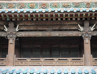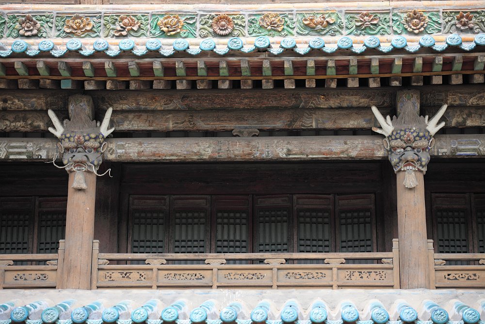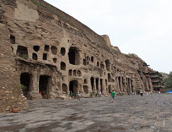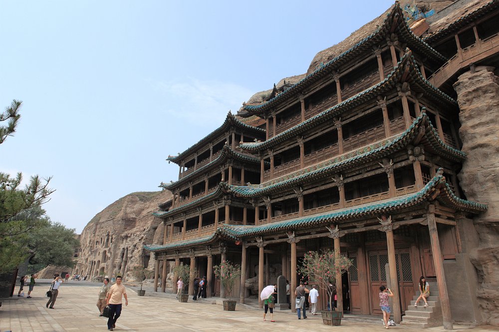 The four-storeyed pavilions of caves 6The eave and supporting beams of the pavilionMask decorationMask decorationThe courtyard of Caves 5-13A frontal view of Caves 9-13The pavilion of Cave 6 (470 - 493 AD)Interior of Cave 6Cave 8's statue of Kumara (鸠摩罗天) - the deity with five heads and 6 arms who protects the Buddhism - sitting on a peacockThe outside of Cave 9 (470-493 AD) Hanging Monestary 2010 Aug