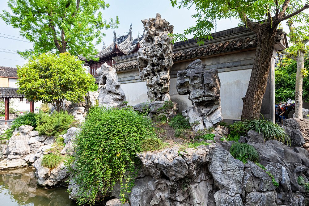 Zhao Wall (照壁), screen wall of the main entrance.Yu Ling Long (玉玲珑) - the Exquisite Jade Rock, the main focus of Yu GardenYu Ling Long (玉玲珑) - the Exquisite Jade Rock.Yu Hua Tang (Hall of Jade Magnificence, 玉华堂), the study room of the rock-loving owner who liked to see the Exquisite Jade Rock all the time.Listening to Billows Pavilion (Ting Tao Tower, 听涛阁), got its name for its proximity to the Huangpu River so one can hear the river's rolling billowsListening to Billows Pavilion (Ting Tao Tower, 听涛阁)Listening to Billows Pavilion (Ting Tao Tower, 听涛阁)Through the Liucui (流翠) Moon gate, one can see Hui Jing Tower (会景楼)Jiyu Water Corridor (积玉水廊) linking Hui Jing Tower (会景楼) and Hanbi Tower (涵碧楼). The Bund 2011 Apr