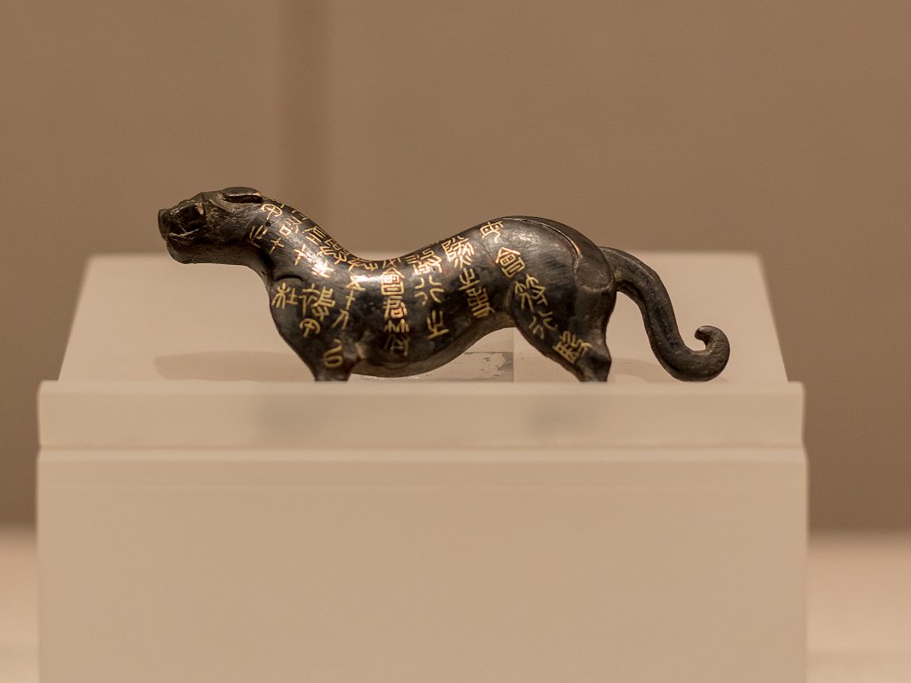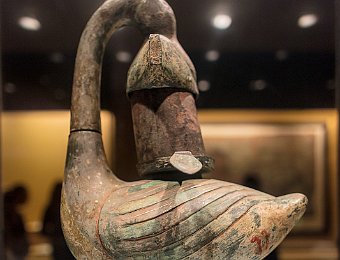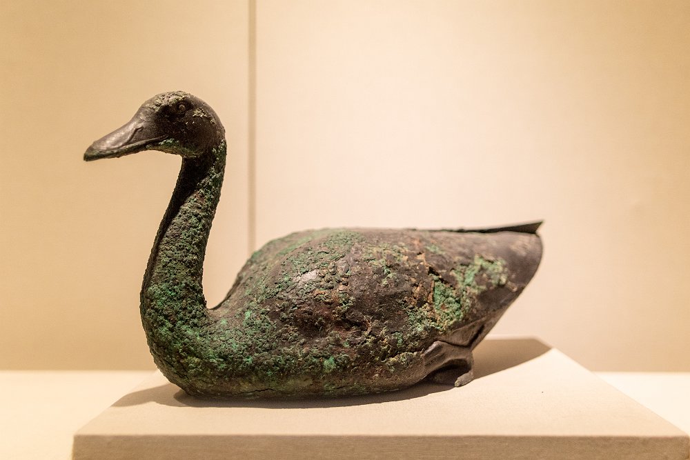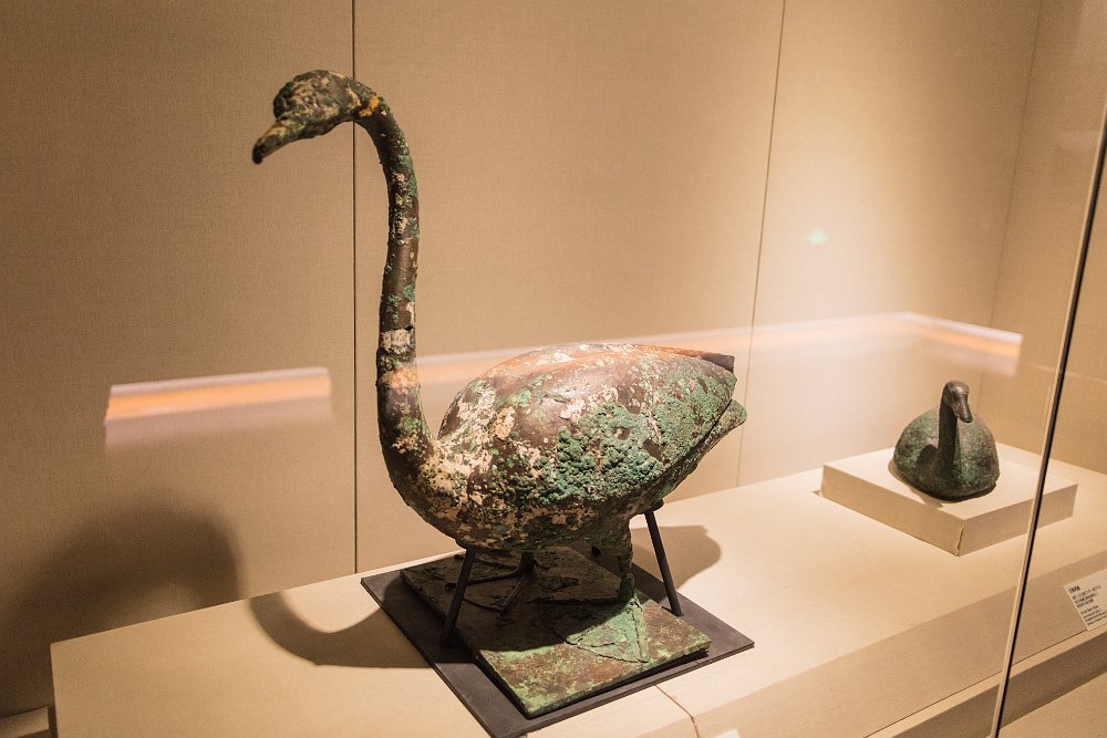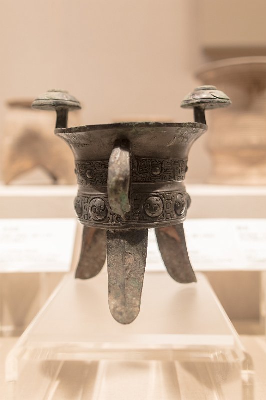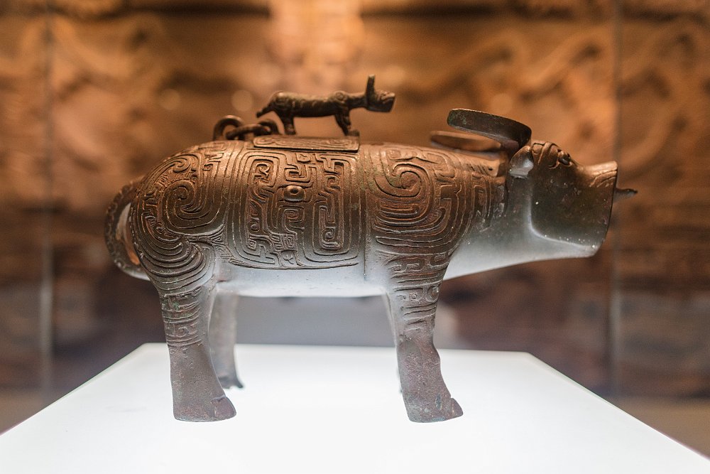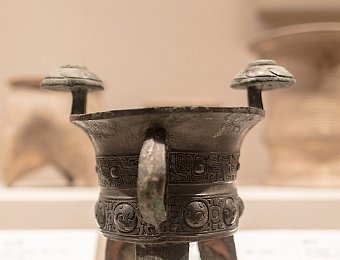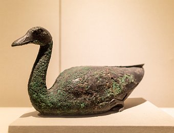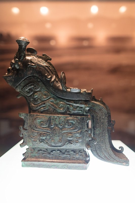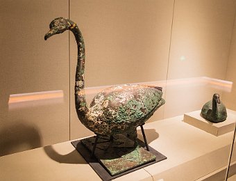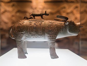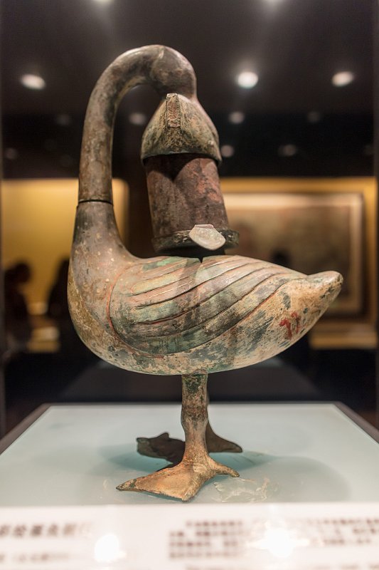 Bronze Jia (青铜斝) - an ancient wine containerBronze Ri Ji "Gong" - an ancient Chinese wine container (日己觥), (西周, 1100 - 771 BC)Ox-Shaped Zun (牛尊), (西周, 1100 - 771 BC), ancient wine containerBronze Tiger-Shaped Tally of Du County (错金杜虎符), (战国时期, around 400 BC), one half of the tally was kept by the commander in Du County and the other half was kept…Bronze goose (青铜鹅), (Qin dynasty, 221 - 207 BC)Bronze wild goose (青铜鸿雁), (Qin dynasty, 221 - 207 BC)Painted bronze goose-fish lamp (彩绘雁鱼灯), (Han dynasty, 202 BC - 220 AD)Potter camel, (Tang Dynasty, 618 - 907 AD) QianlingTerracotta army museum