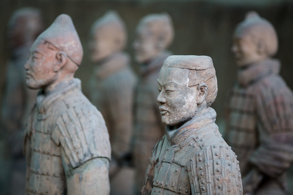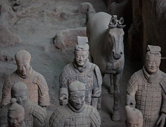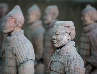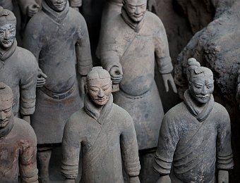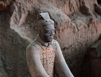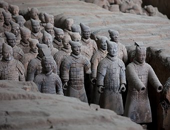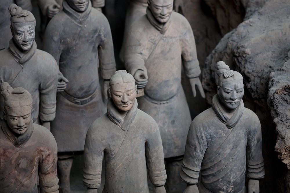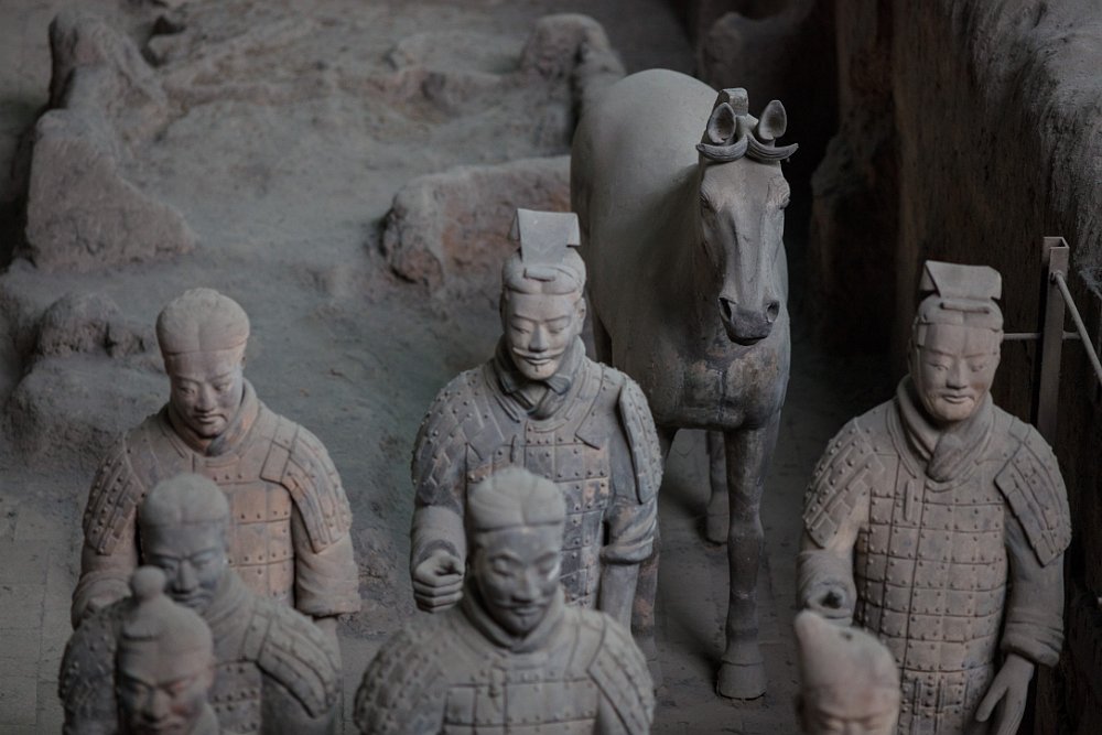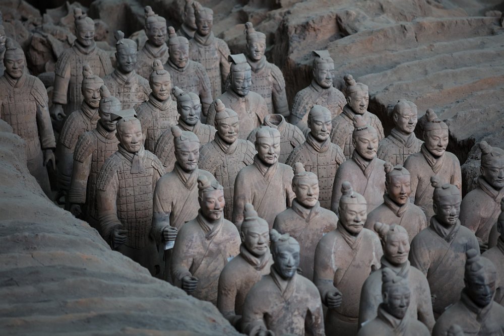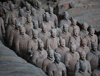 Pit 1 - 11 parallel pits running east to west containing an estimated 8000 terracotta figuresThe terracotta army lined up in military position in Pit 1Terracotta warriors and horseLight infantrymen in Pit 1Armoured terracotta warriors lined up in military formationThree rows of unarmoured infantry at the frontAnother view of the front rowsChariot driverAn armoured infantrymanArmoured infantrymen Shaanxi history museum