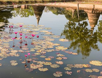 Bauhinia flowerWat Mahathat: the viharn (assembly hall) viewed from the modern road to the eastWat MahathatWat MahathatRound and redented (right) chedi on the side of the viharnLotus pondA large chedi at the west side of the Wat Mahathat complexAnother view of the large chediA chedi on the side of the central monumentsBuddha image in a small viharn to the southeast Si Satchanalai 2017 Dec