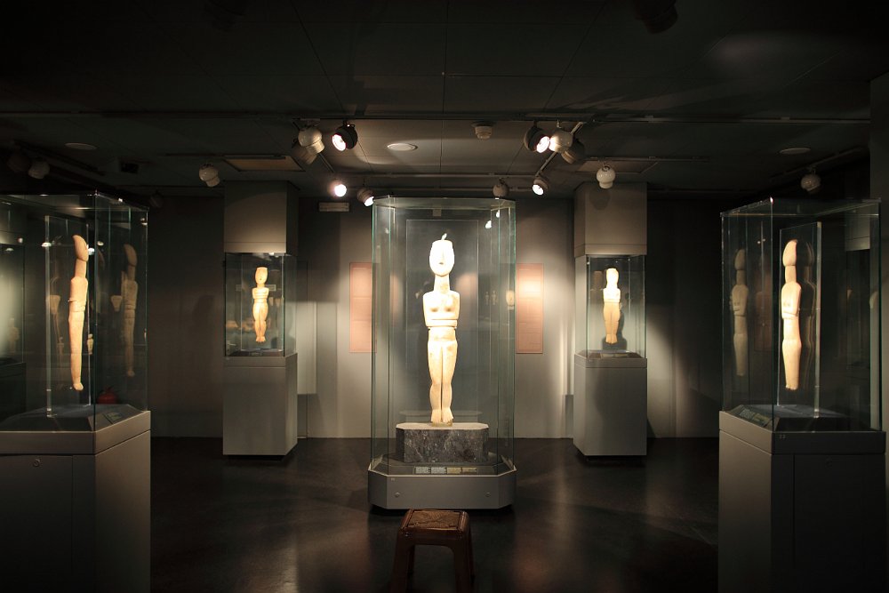 The gallery of the Cycladic collectionHead of a figurine of canonical type (2800 - 2300 BC)Female figurine of the post-canonical type (circa 2300 BC)The "cup bearer" (circa 2600 BC)Left: Attic black-figure lekythos (circa 490 BC); right: black figure amphora (late 6th century BC)Red-figure bell krater (375 - 350 BC)Top: Attic red-figure kylix (circa 480 BC); bottom: Attic black-figure lekythos (540 - 530 BC)Attic red-figure column krater (500 - 490 BC)Mycenaean jars (16th - early 11th BC)Large Attic pyxis with lid crowned by four horse figurines (760 - 750 BC) Ancient Agora 2012 AugOther places 2012 Aug