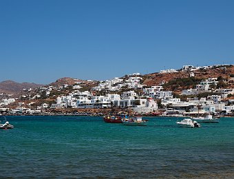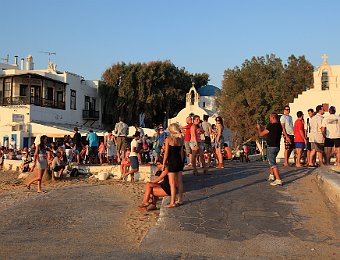 Petros the Pelican, the mascot of MykonosMykonos old portChurch of Agia MoniA square in Mykonos old town16th century windmillsA view of the little Venice through the windmillsLittle VeniceSquare leading to Little VeniceSunset view from Paraportiani ChurchSunset view from Paraportiani Church Delos 2012 AugSyros 2012 Aug