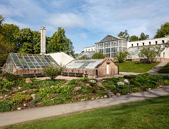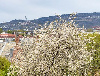 The greenhousesBotanical museum (left)A view of Holmenkollbakken - the large ski jumping hill - from the botanical gardenPicnic areaThe systematic gardenThe Scyamore row - giant maple fruits by Tom HareThe Scandinavian ridgeThe rock gardenChinese bush cherryChinese bush cherry BirdsBygdøy