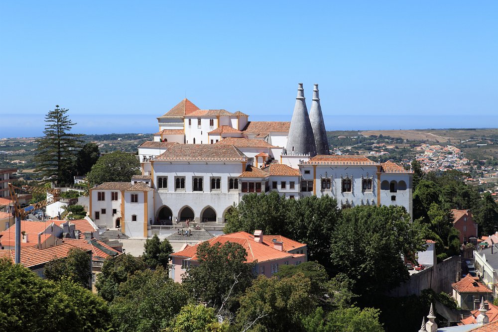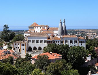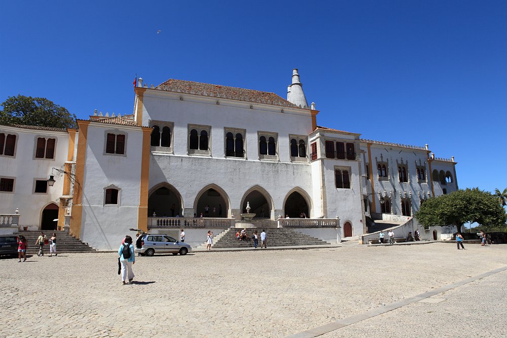 Narrow street, Sintra old townSintra old townFerreira de Castro MuseumSintra National PalaceSintra National PalaceSpiral stairs in the PalaceLamps hanging above the entrance hallSala dos Cisnes (Swan Hall)Ceiling of Swan HallSmall courtyard Moorish Castle and Pena National Palace 2009 Aug