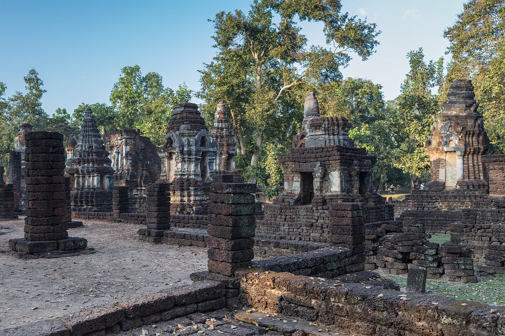 Wat Chedi Chet Thaew (late 14th, early 15th centuries) is the most complex monument of all the temples at Si Satchanalai, comprising over 30 chedi surrounding a…