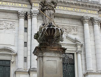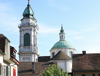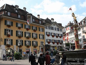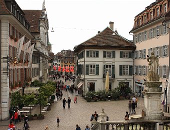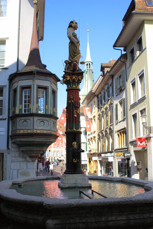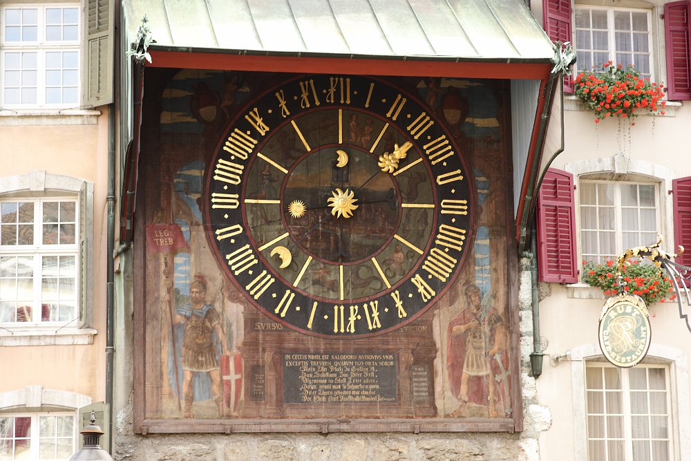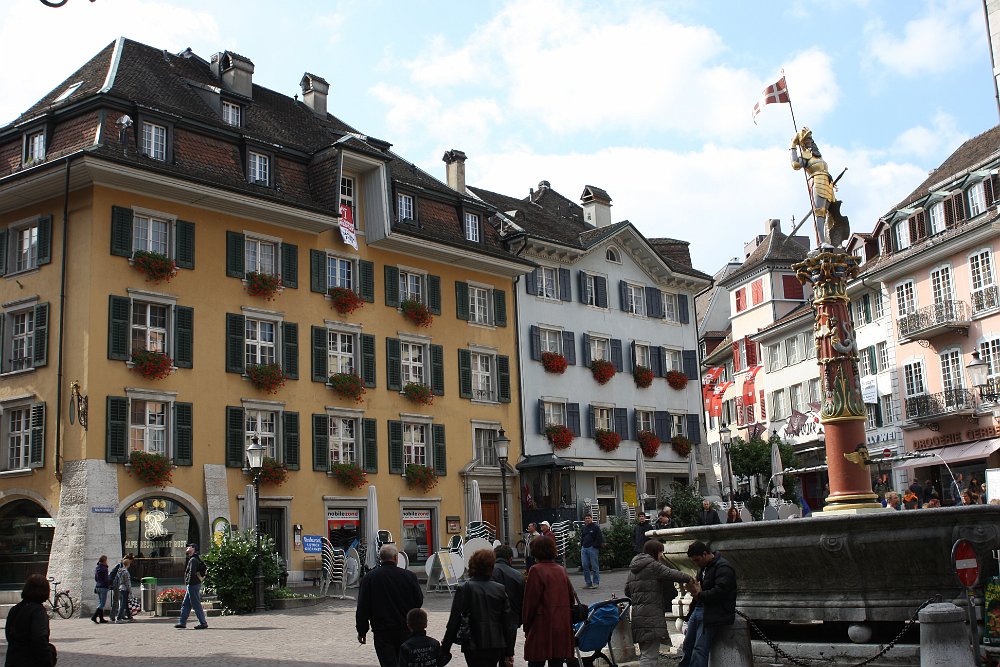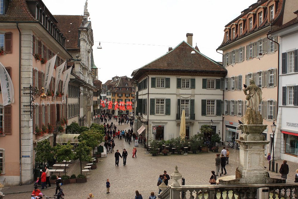 Cathedral of St UrsusThe tower of Cathedral of St UrsusMoses fountain, Cathedral of St UrsusHauptgasseJesuit Church (fake marble stucco)Marktplatz and St Ursus fountainZeitglockenturmAstronomical clockSculpture above the astronomical clockJustice fountain Solothurn 2020 Jul